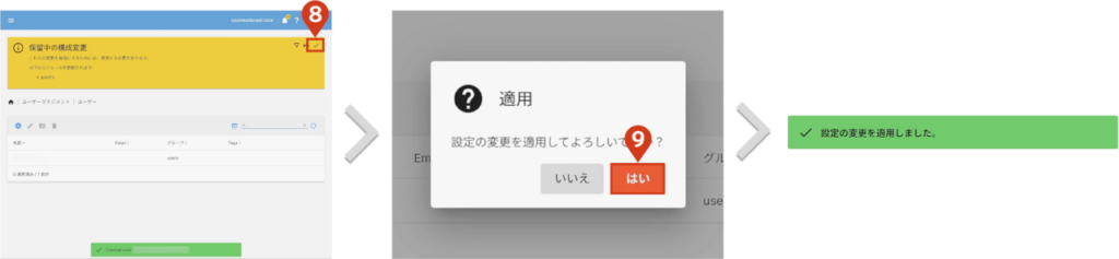 保存をクリック後、保留中の構成変更のチェックボタンを選択し、適用してください。