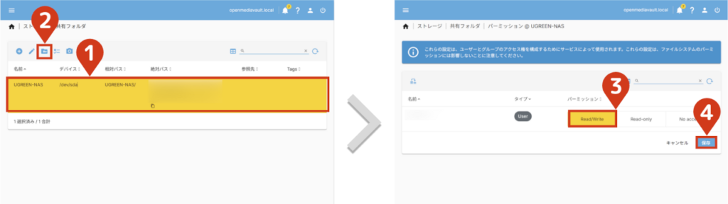 「Read/Write(読み込み・書き込み権限)」を選択してから保存をクリックします。
