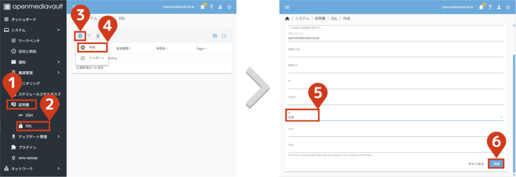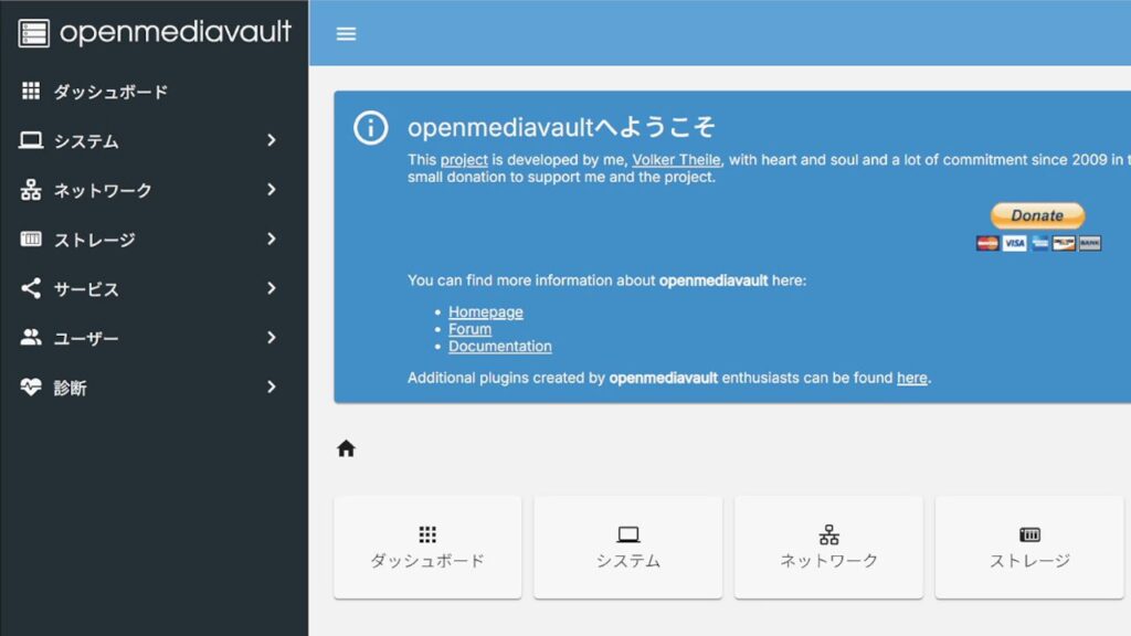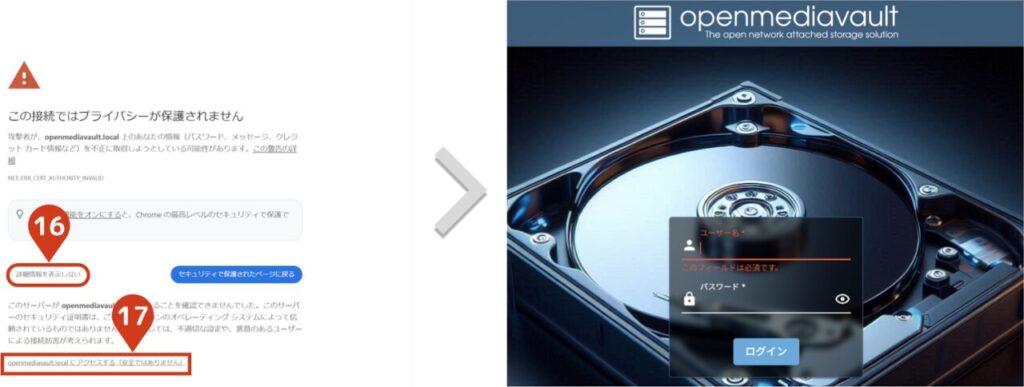 「https://www.openmediavault.local」で再度管理画面にアクセスしてください。