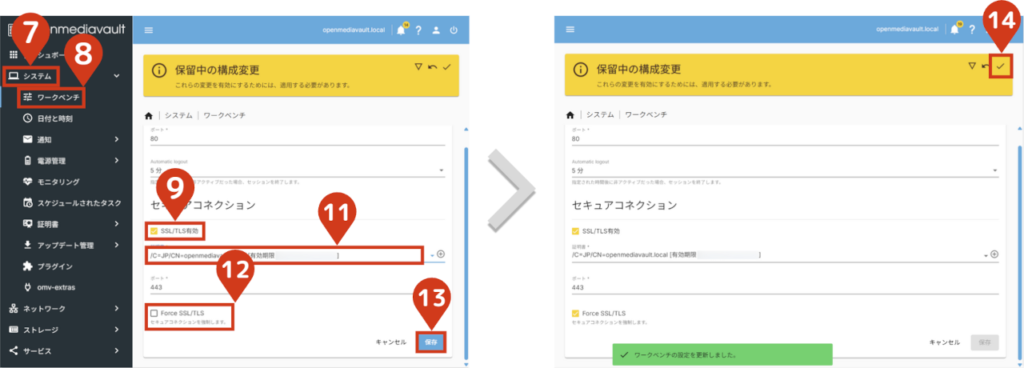 黄色の保留中の構成変更を無視して、次に左のメニューから「システム」→「ワークベンチ」にアクセスします。