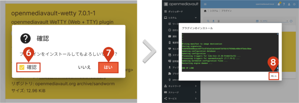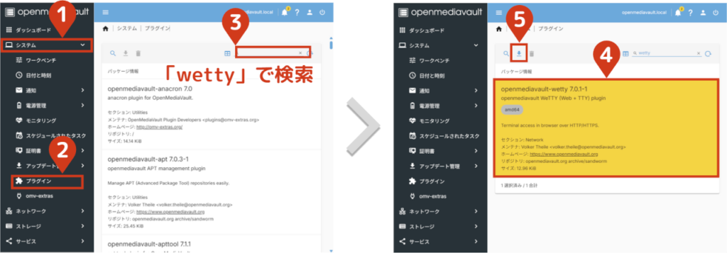 OMVの拡張プラグイン「omv-extras」をインストールするための下準備として、まずは「WeTTY」をインストールします。