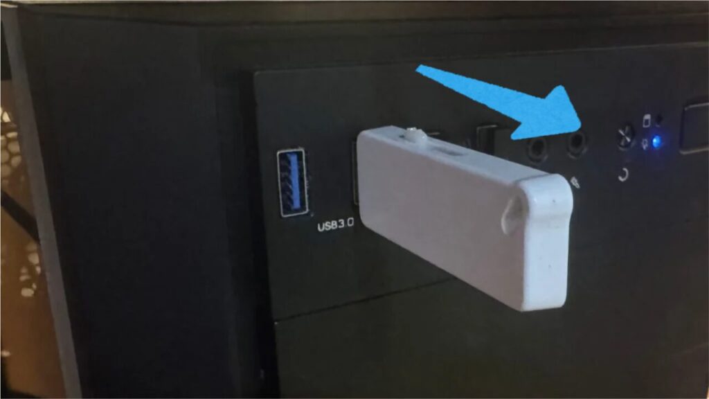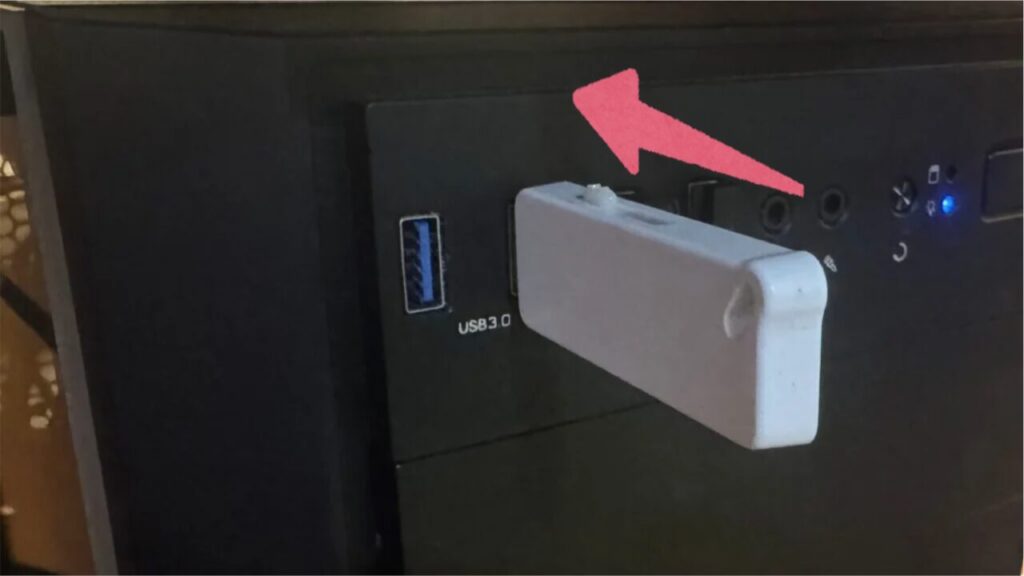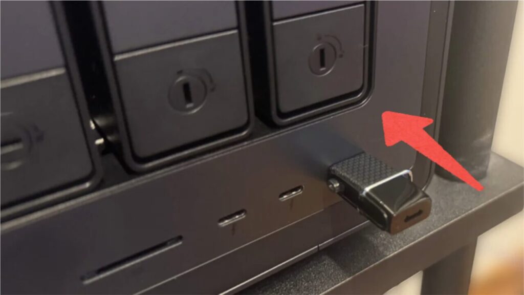 先程「Rufus」で書き込んだUSBメディアをNASに差し込みます。