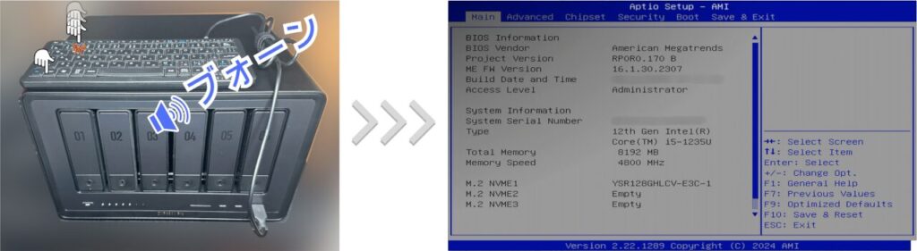 NAS起動と同時に、Ctrl +F2 or Ctrl +F12 を連打します。