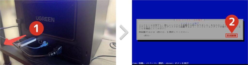 OSインストール用の外付けUSBストレージを差していない場合は、このタイミングでUSBを差してください。
