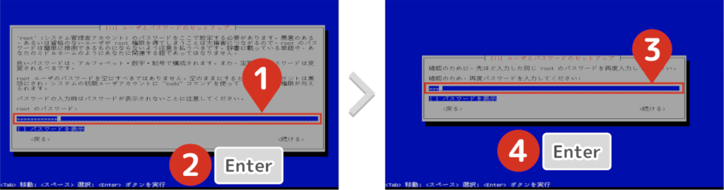 ユーザーは「root」。OSインストール時に設定したパスワードを入力してください。