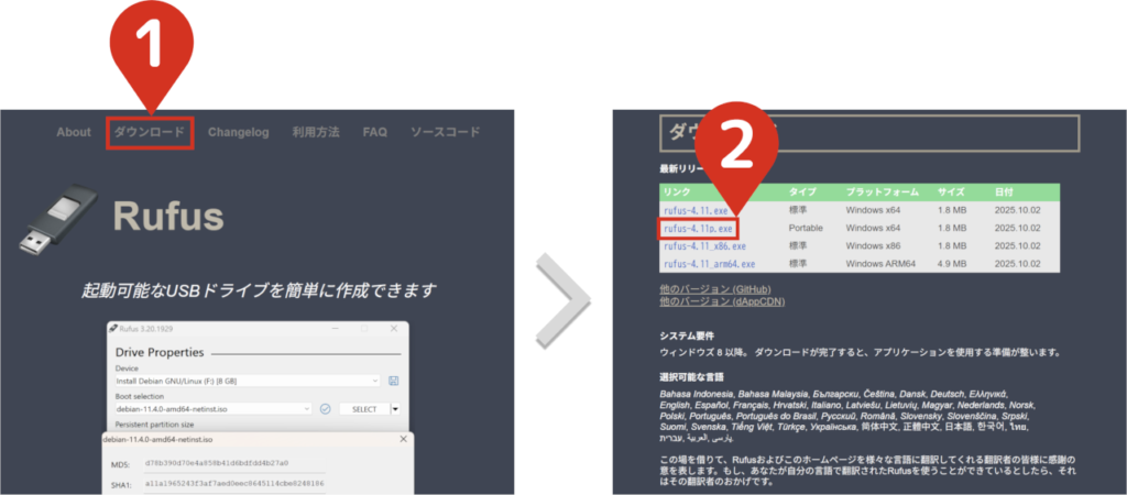 | OSインストール先 | 4 GiB以上の専用ドライブ (HDD/SSD/USB) | 16 GiB SSD/HDD (専用ドライブ) | 専用USBメモリ (OSはこのメモリから起動・実行) |