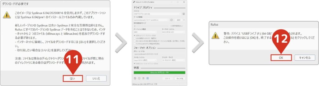 警告がでますが、はいを押して対応するSyslinuxをダウンロードしてください。