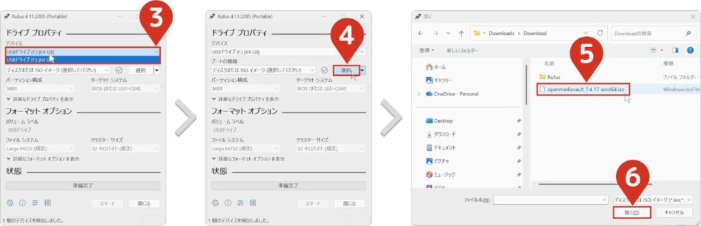 接続したUSBメディアを選択後、ダウンロードしたOSファイルを選択します。