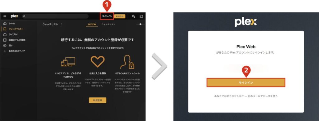 ※まだ「Plexアカウント」を作成していない方は、こちらを参考にしてください。