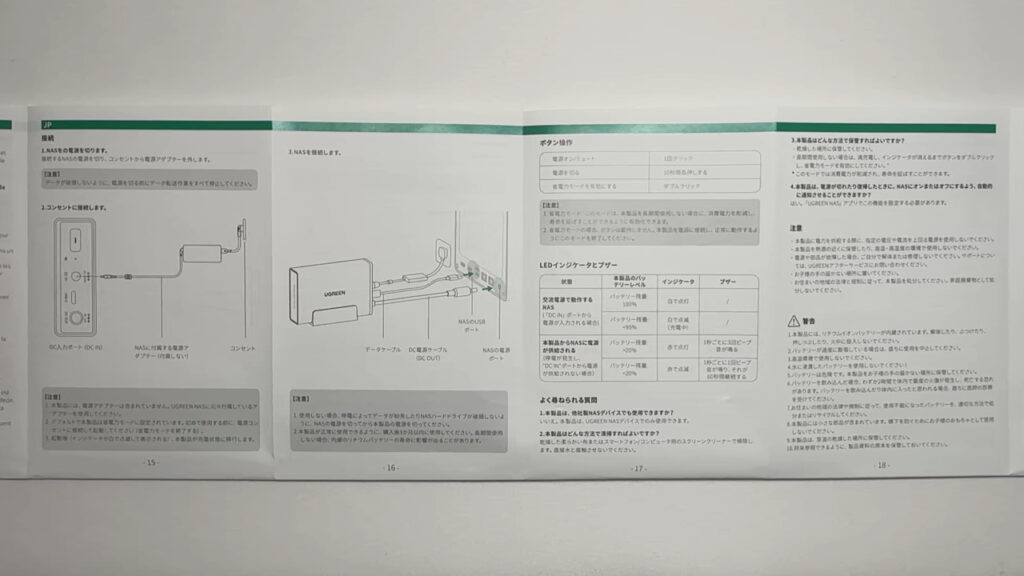 接続方法や長期保管方法が書いてありますので、よく読むことをオススメします。