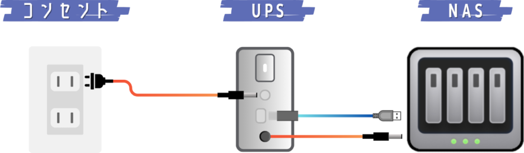 最低限のシンプルな作りになっているため、配線に迷うことがありません。さらにNASに接続後は、UPS本体を操作することがありません。