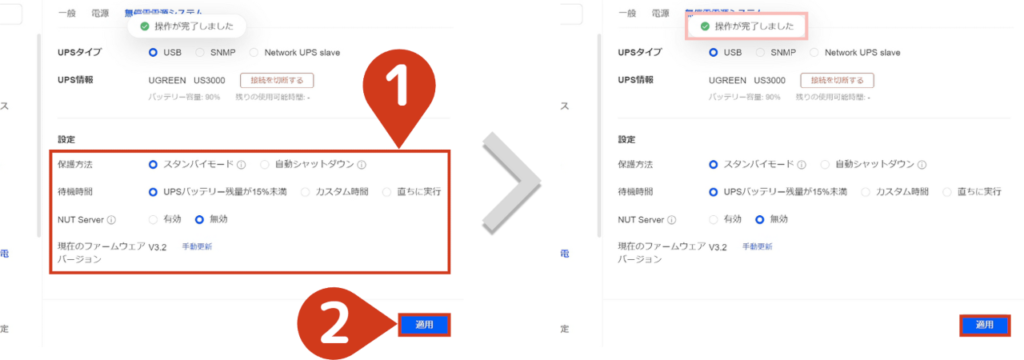 待機時間がなく、すぐに設定した保護方法でNASを制御します。