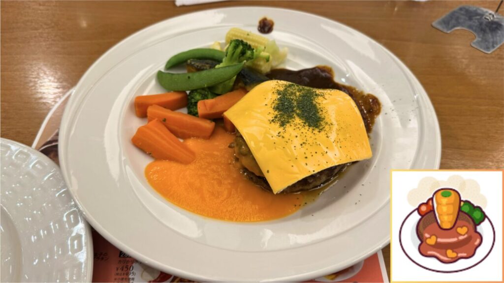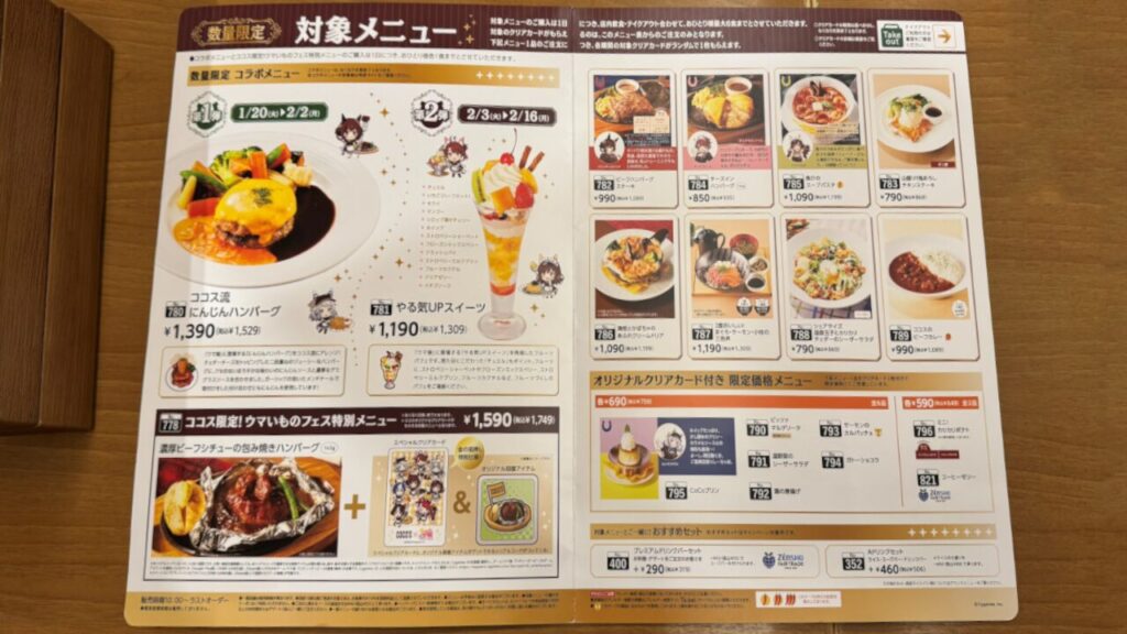 せっかくなので、コラボを楽しむべく「ココス流にんじんハンバーグ」をメインに、クリアカード付きのメニューのみを頼むことにしました。
