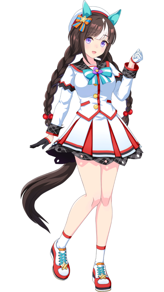 苫小牧からやってきたローカルアイドルウマ娘。 郷土愛が強く、よく苫小牧特産品の「ハスカップ製品」を推してくる。また史実の通り『とまこまい観光大使』に任命されており、苫小牧をPRすべく、日々邁進中。 真面目で頑固な一面があり、よく寮の同室である「コパノリッキー」と口論している。