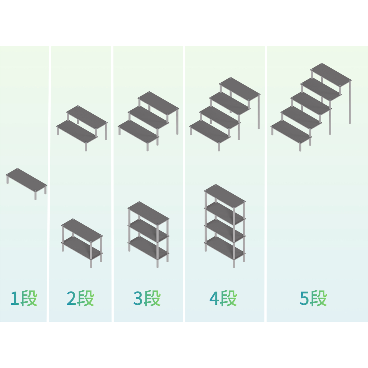 本記事では、階段状-5段の場合の組立方法を紹介しています。